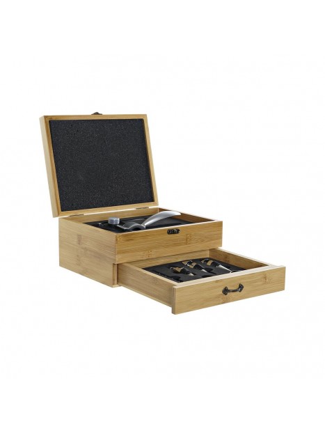 Set d'Accessoires pour Vin DKD Home Decor Bambou Acier inoxydable Marron Clair (8 pcs) (26 x 22 x 13 cm)