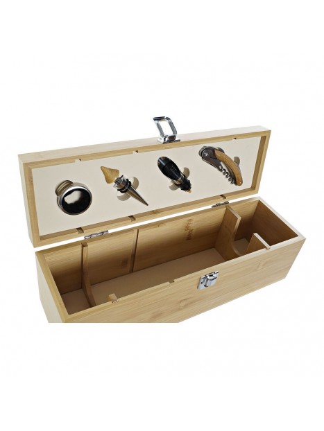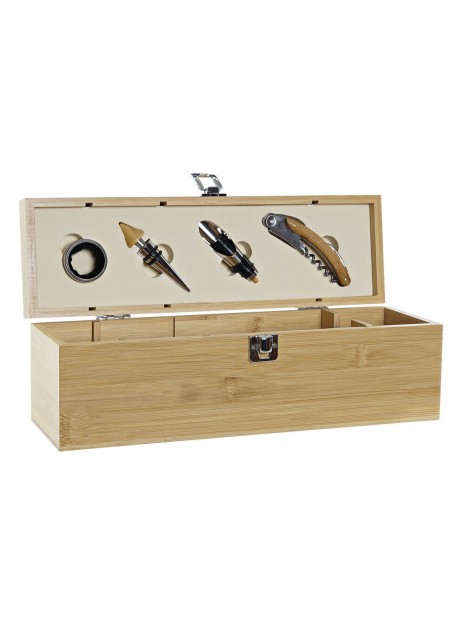 Set d'Accessoires pour Vin DKD Home Decor Bambou Acier inoxydable Marron Clair (4 pcs)