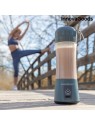 Un mixeur rechargeable pour réaliser des milkshakes, jus et smoothies naturels avec un confort total à la maison, au bureau, à la salle de sport, etc. Grâce à sa conception compacte et portable, il peut être facilement transporté n'importe où dans votre sac, sac à dos, etc., et il est complètement démontable pour le nettoyage. Il a une capacité de 380 ml, 4 lames, une poignée de transport, un indicateur de charge LED et un système de sécurité, de sorte que les lames ne fonctionnent pas lorsque le produit n'est pas correctement assemblé et fermé. Il dispose également d'un système anti-goutte-anti-déversement et d'un filtre de sortie pour verser le contenu prêt à boire, sans grumeaux ni pulpe. Ses indicateurs de position du verre par rapport à la base aident à son positionnement correct pour permettre la rotation. Son fonctionnement est très simple, il suffit d'appuyer sur le bouton marche / arrêt jusqu'à ce que vous obteniez la texture souhaitée, obtenant rapidement un résultat optimal grâce à sa puissance et sa vitesse (17000 tr/min). Il est recommandé de placer le mélangeur à un angle de 45° et de le secouer doucement pour accélérer et améliorer le processus de mélange.
